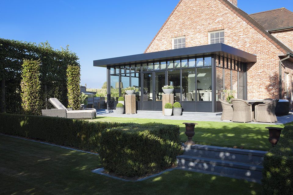 L’acier est une autre possibilité, il est très résistant et permet de très bonnes performances quant à l’isolation thermique, il est en revanche un peu plus onéreux que l’aluminium mais son rendu est sublime.