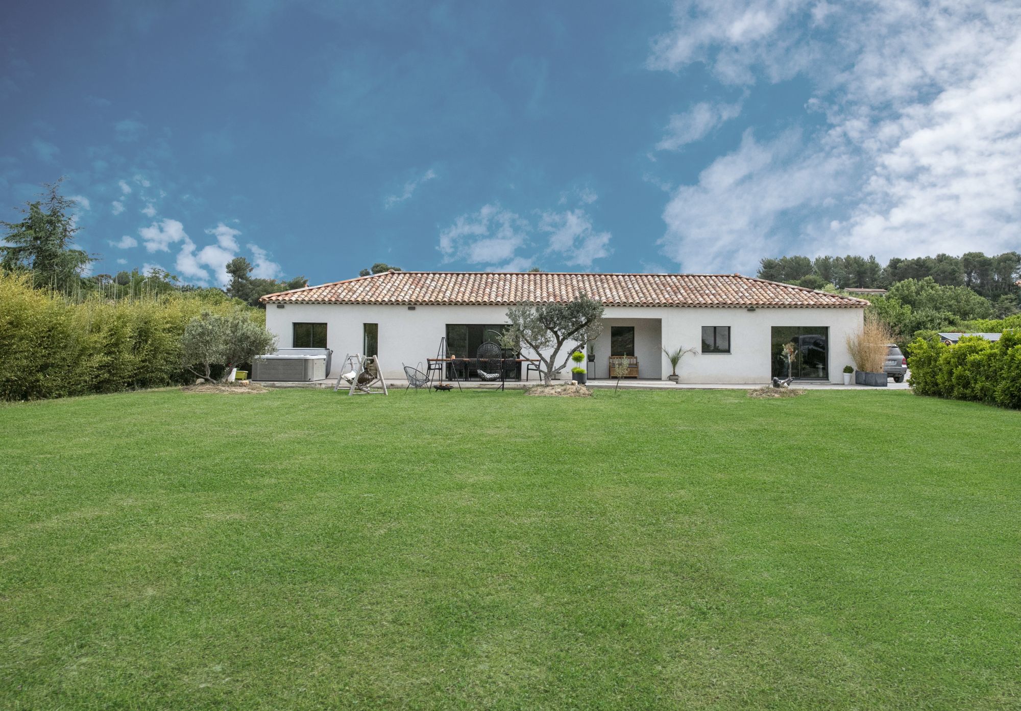 FICHE D'IDENTITE Maison contemporaine de plain-pied avec un grand jardin