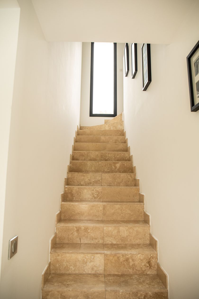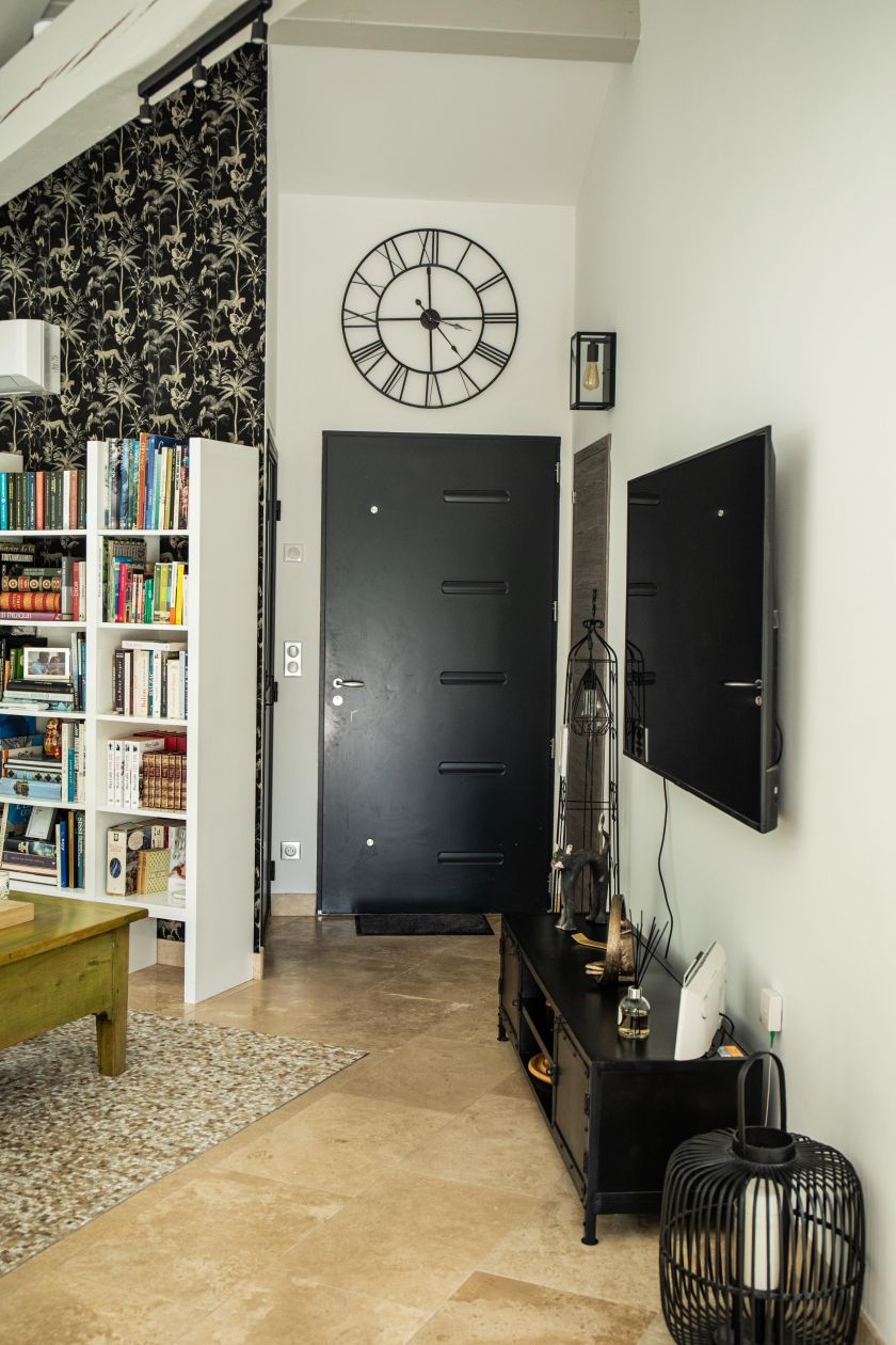 • Un couloir avec vide sur séjour, apportant luminosité et sensation d’espace.