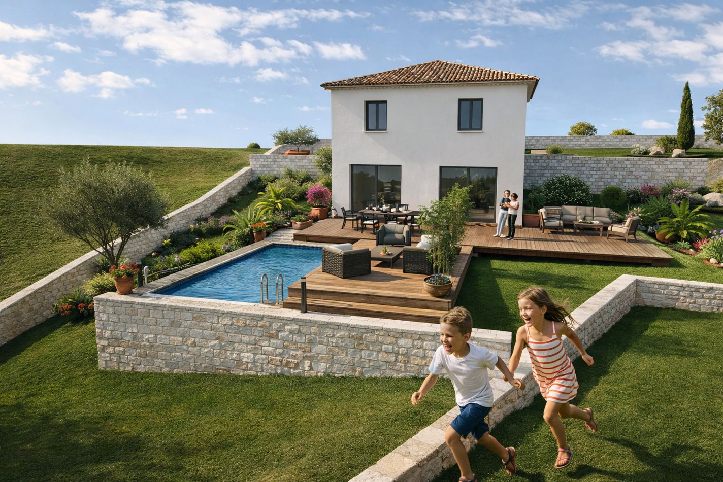 - Prestations et équipements selon vos souhaits : carrelages, faïence, menuiseries, salles de bains...