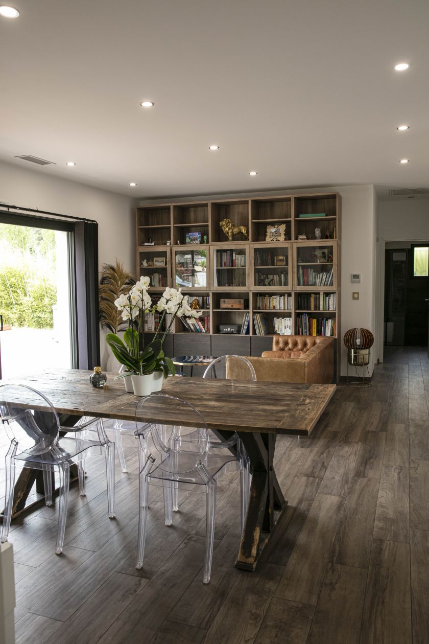 Découvrez cette maison contemporaine pensée pour le confort familial et la performance énergétique. Cette maison de plain-pied développe une surface habitable de 105 m² parfaitement optimisée. Dès l’entrée, vous serez séduit par un vaste espace de vie, baigné de lumière naturelle grâce à ses larges ouvertures. L’agencement fluide intègre une cuisine ouverte sur le séjour, idéale pour partager des moments conviviaux en famille ou entre amis.