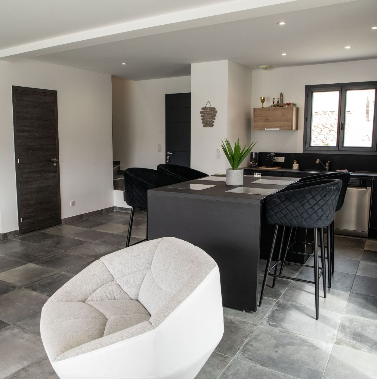 Cette maison à étage de 115 m² offre un espace de vie fonctionnel. Au rez-de-chaussée, une grande pièce de vie avec cuisine ouverte, un cellier attenant à la cuisine et un garage intégré viennent compléter l'espace jour.