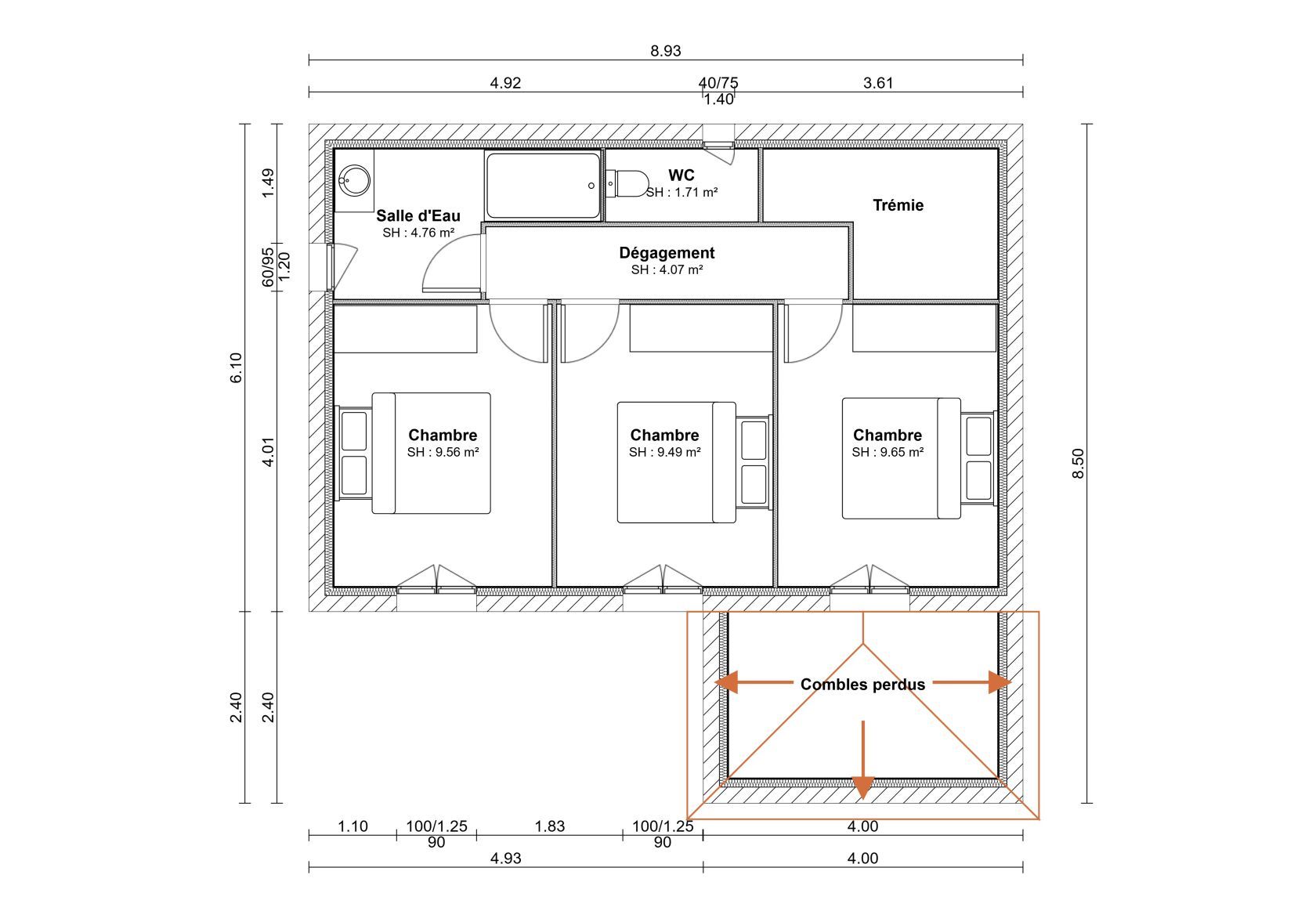 Nombre de chambres : 3