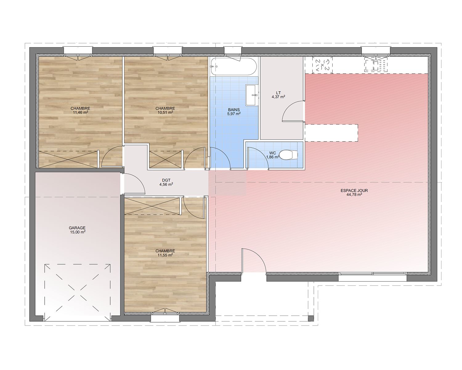 - Prestations et équipements selon vos souhaits : carrelages, faïence, menuiseries, salles de bains...