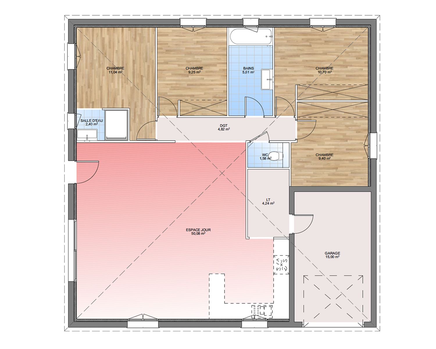 - Prestations et équipements selon vos souhaits : carrelages, faïence, menuiseries, salles de bains...