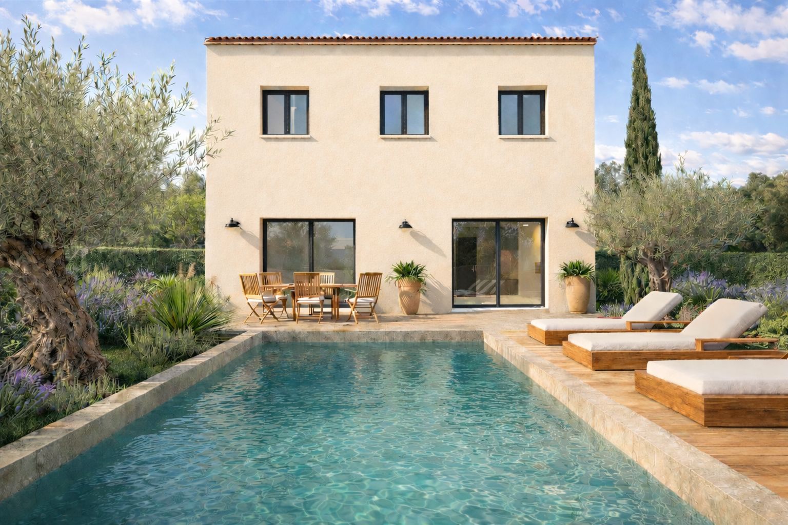 BUDGET TOTAL -> Maison 100 m2 + Terrain + Viabilités + Frais annexes = 447.000€ (hors frais de notaire)