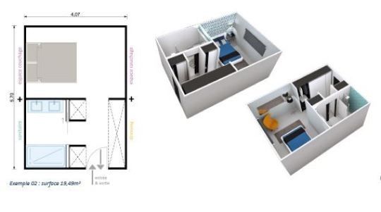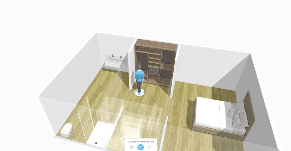 - Le 3 en 1. En choisissant cet agencement vous pourrez réduire la gêne sonore en prévoyant une double entrée ou une entrée du côté du dressing. De plus, la salle de bain se trouvant à l’opposé de la chambre, vous aurez plus d’intimité.